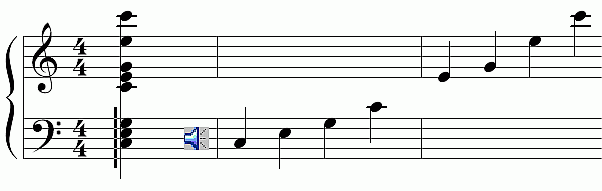 - es werden einmal alle Noten des Akkordes, beginnend von unten nach oben einzeln vorgespielt
