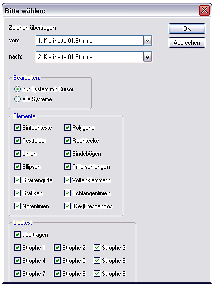 Objekte einer Zeile kopieren und in die Notenzeilen kopieren