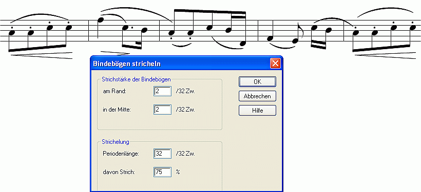 Mit diesem Skript können die Bindebögen der ganzem Partitur gestichelt werden