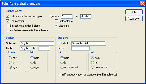 Bei Einfachtexten können Schriftarten und -größen global ersetzt werden