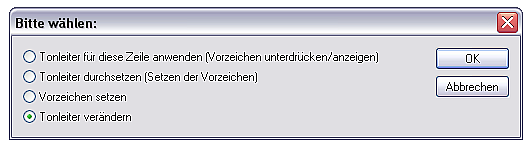 Tonleiter für diese Zeile anwenden – Die Vorzeichen an den Noten werden angepasst