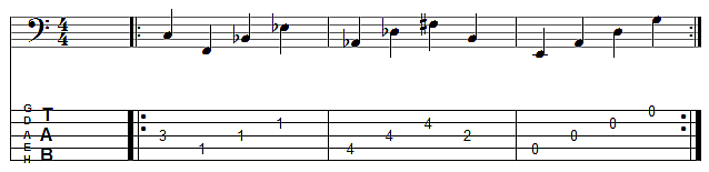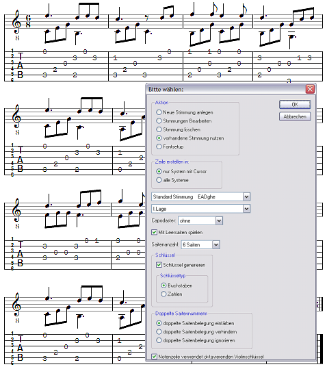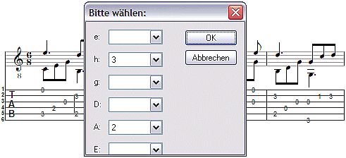 Dieses Skript erzeugt eine Tabulatur für Gitarre