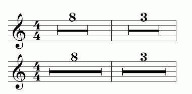 Mehrtaktpausen von Capella werden durch breitere grafische Mehrtaktpausen ersetzt.