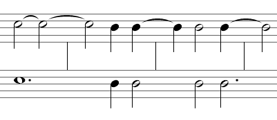 Hier sind oft Noten dargestellt, deren Wert über einen Takt hinausreichen.
