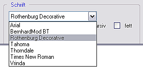 verwendeten Schriftarten gespeichert und stehen dann in der Auswahl zur Verfügung.