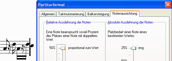 Beide Schieber der Notenausrichtung und ok jeweils nur anklicken, dann stimmt das Notenbild wieder. Manchmal reicht es auch, nur auf OK zu klicken.