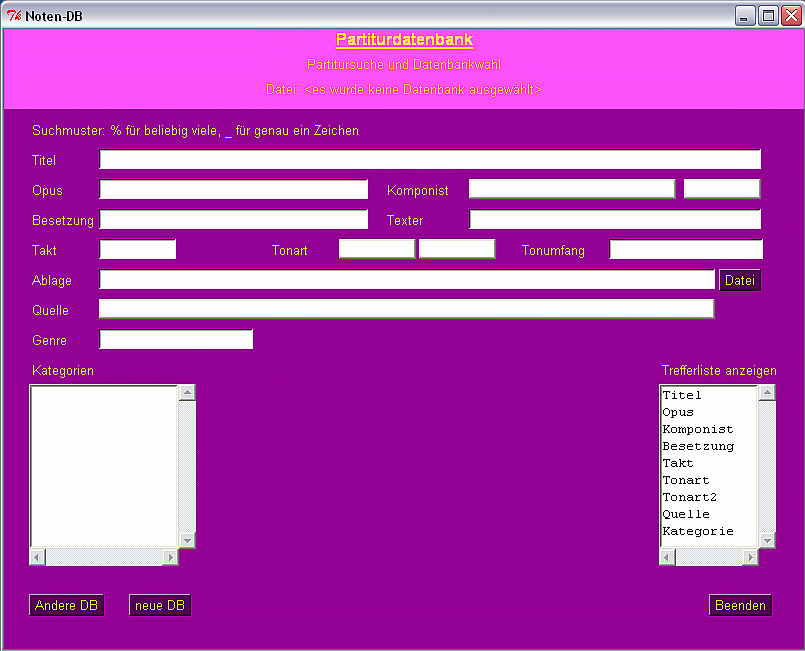 - Eine neue DB erstellen oder eine bestehende öffnen