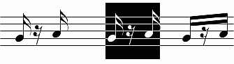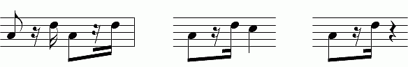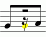 - Ist der Notenwert der hinteren Note kürzer, darf diese nicht als letze Note in der Zeile stehen.