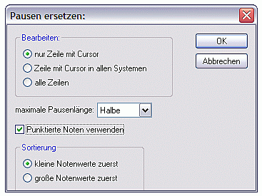 - Ob punktierte Pausen verwendet werden ist wählbar