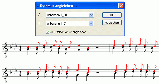 Dieses Skript synchronisiert den Rhythmus zweier Stimmen oder aller Stimmen mit einer.