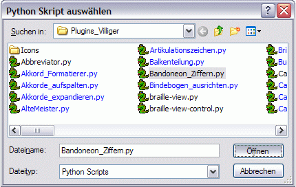 - das gewünschte Skript auswählen und mit Öffnen speichern