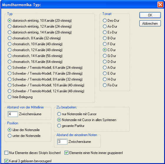 Mit diesem Skript kann man Mundharmonika-Tabulatur umsetzen