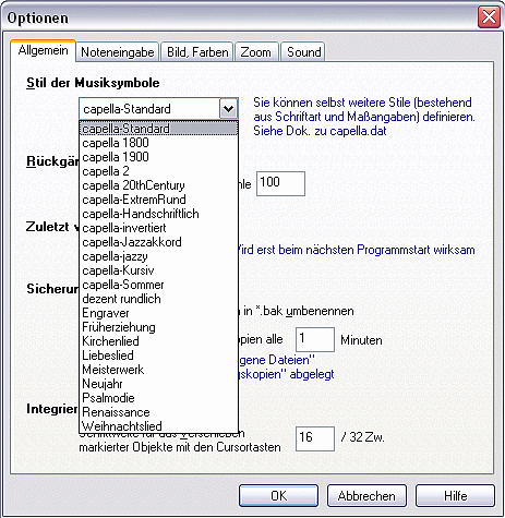 Stil der Musiksymbole hier sind alle Notenschriftarten aufgelistet, die in der Datei data\capella.dat unter [Styles] eingetragen sind.