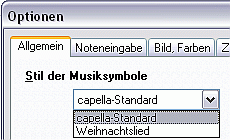 Nun kann die neue Notenschrift Weihnachtslied in Capella / Optionen / Allgemein ausgewählt werden
