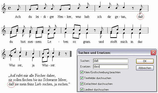 einfach z.B. die Texte in einer Partitur der neuen Rechtschreibung anzupassen.