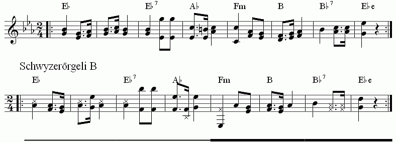oder oktavieren, da der Tonumfang eines Schwyzerörgelis nur von E bis g'