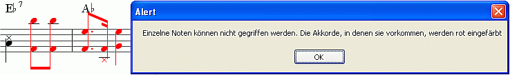 - Bei nicht spielbaren Noten erscheint ein Hinweis – diese Noten werden rot dargestellt.
