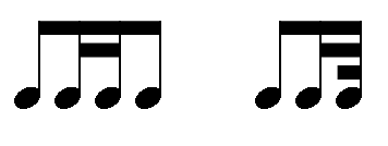 | - | Das Minuszeichen steht vor der Note. Die Note erhält einen halben Balken nach links. |