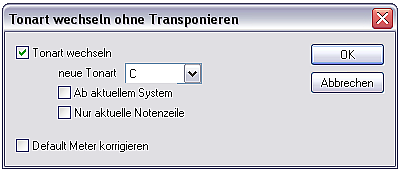 Die Taktangabe (Meter) wird nur in der ersten Zeile angegeben. In den Folgezeilen ist diese Angabe jeder Notenzeile zugeordnet (Default Meter). Wechselt man in der ersten Notenzeile den Takt, so passiert in den Folgezeilen nichts. Auch die erste Notenzeile wechselt wieder in den ursprünglichen Takt, wenn die Taktangabe gelöscht wird. Mit dem Skript lässt sich dies korrigieren.