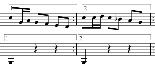 Beginn und Ende der Voltenklammern werden auf die Taktstriche ausgerichtet.