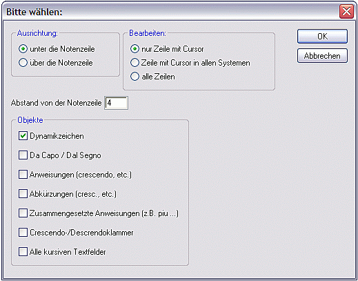 Dynamikzeichen über oder unter der Notenzeile positionieren